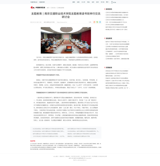 【中国教育在线】主题教育 | 南京交通职业技术学院主题教育读书班举行交流研讨会