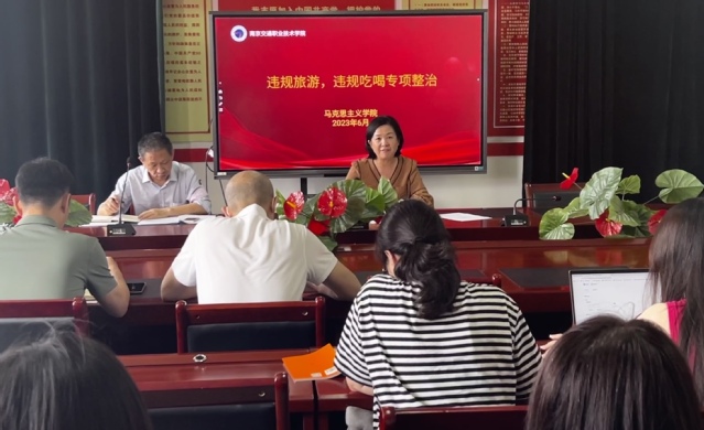 为深入学习贯彻党的二十大精神,认真落实二十届中央纪委二次全会和十四届省纪委三次全会要求,严肃整治违规旅游、违规吃喝等反复性顽固性问题,6月7日下午马克思主义学院召开了违规旅游、违规吃喝问题专项整治专题会。会议由直属党支部书记郭荣梅主持,全体党员、教师参加。