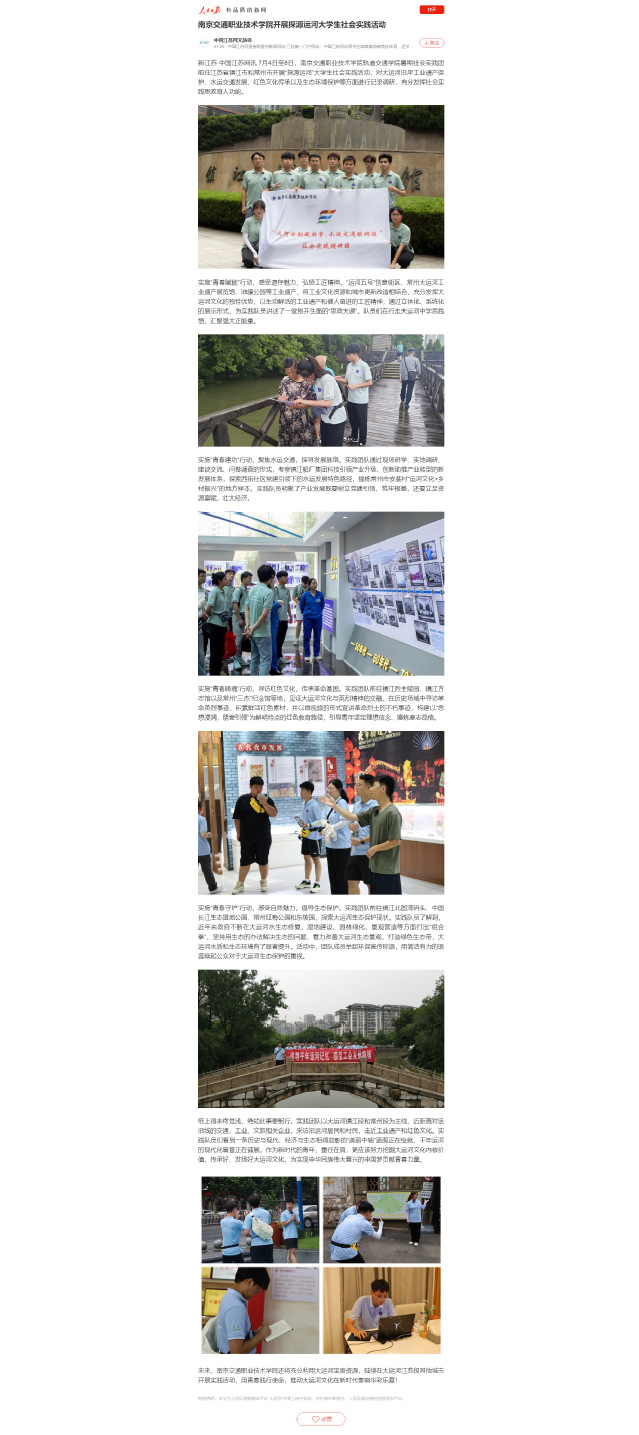 【中国江苏网文旅体】南京交通职业技术学院开展探源运河大学生社会实践活动