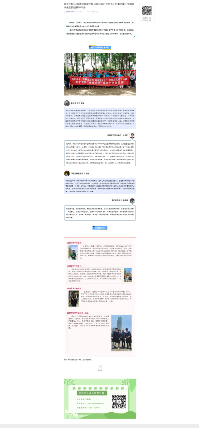 【江苏教育外事】南京交院 盐城师院留学生畅谈学习习近平总书记给南京审计大学留学生的回信精神体会