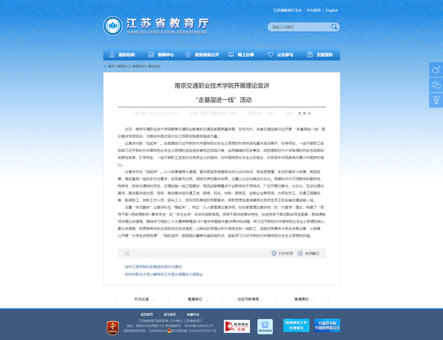 【江苏省教育厅官网】南京交通职业技术学院开展理论宣讲 “走基层进一线”活动