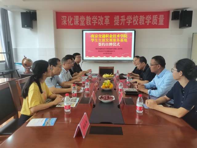 为进一步加强校际合作交流,推进生涯规划教育在基础教育阶段实施落地,帮助中学生尽早树立生涯规划理念,科学规划学业和职业发展方向,9月20日,路桥与港航工程学院与江宁区龙都初级中学共建学生生涯发展教育服务基地签约暨揭牌仪式在龙都中学会议室举行。路桥与港航工程学院党总支书记李国之、副书记彭涌涛、相关辅导员,龙都初级中学校长吕克林、副校长程顺平,德育主任张爱华、团支部书记周华出席本次活动。