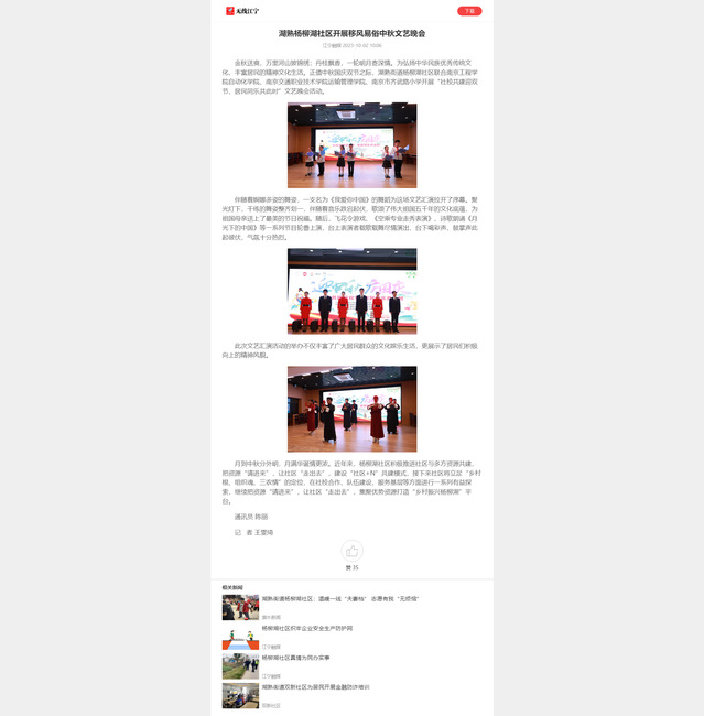【无线江宁】南京交通职业技术学院运输管理学院与湖熟杨柳湖社区开展移风易俗中秋文艺晚会
