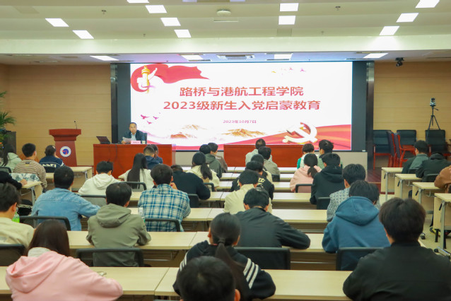 为深入学习贯彻党的二十大精神,坚持以习近平新时代中国特色社会主义思想铸魂育人,引导和帮助广大新生了解党的基本知识、理论和入党程序,深化对党的理解认知,树立正确的世界观、人生观和价值观,增强党在青年学生中的吸引力和凝聚力,根据学院新生入学教育工作安排和党总支部署,10月7日,路桥与港航工程学院党总支在图书馆B203召开2023级新生入党启蒙教育大会。会议通过线上线下相结合的方式开展,新生各班级在教室组织收看。