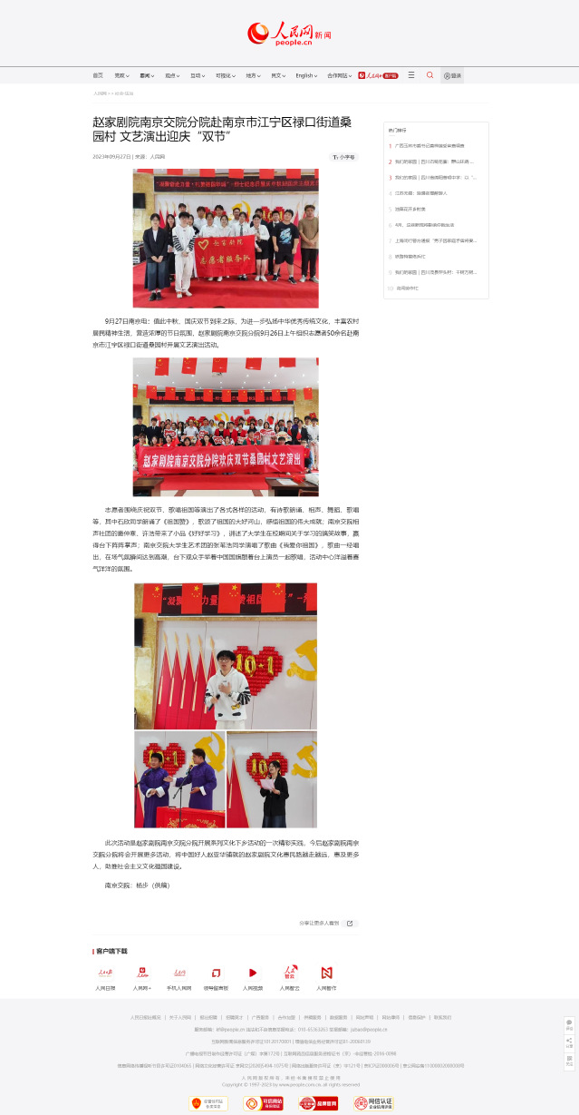 【人民网】赵家剧院南京交院分院赴南京市江宁区禄口街道桑园村 文艺演出迎庆“双节”
