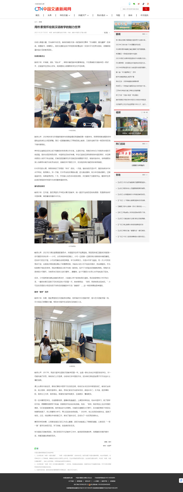 【中国交通新闻网】用朴素情怀绘就汉语教学的魅力世界