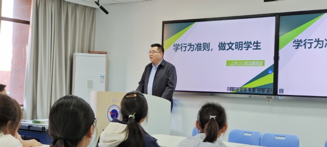 张书记与同学们分享了自己参与此次主题班会的心得体会,认为班会内容安排十分有意义,强调大学生树立规则意识,养成文明习惯的重要性,叮嘱同学们要严格遵守各项规章制度,提高思想认识,自觉抵制不良风气,把握奋斗方向,为未来人生发展打下坚实基础。