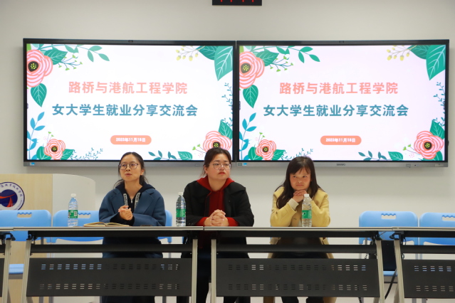 为引导学院女大学生树立健康正确的就业择业观念,值庆祝建校70周年校友返校之际,11月18日下午,路桥与港航工程学院在修远楼509举办女大学生就业交流分享会。此次活动邀请了2006级校友徐飞飞、2010级校友董理作分享交流,学工办主任黄阿梅老师,2022级、2023级学生代表参加。