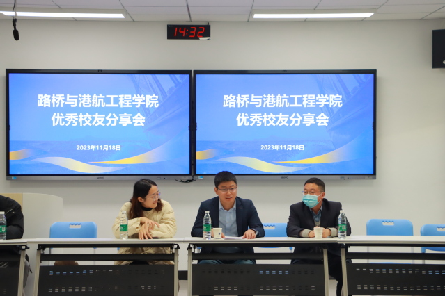 为进一步提高广大学生职业生涯规划意识和能力,更好地了解当前的就业形势,值庆祝建校70周年校友返校之际,路桥与港航工程学院于11月18日在修远楼507举办优秀校友分享会,邀请了学院2008级校友韩阔和2011级校友王晓煜为大家作分享交流,党总支副书记彭涌涛,2022级与2023级学生代表参加交流会。