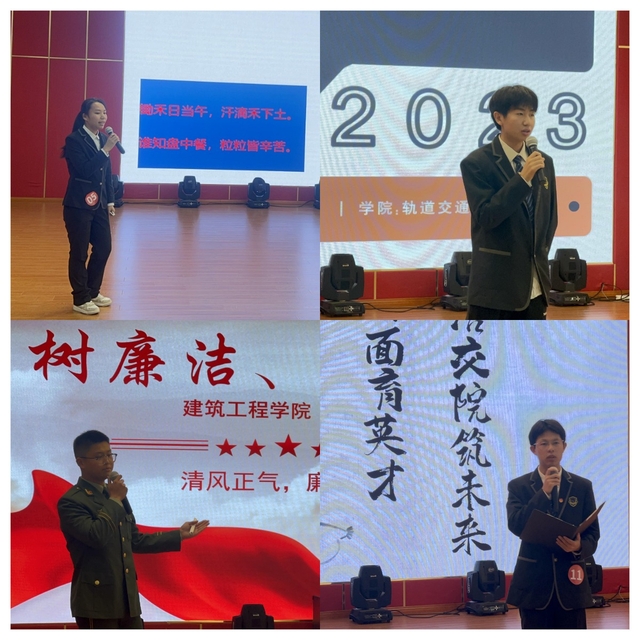 为深入学习贯彻党的二十大精神,贯彻全面从严治党战略方针,扎实推进学校廉洁文化建设,培育廉洁教育文化品牌,由校纪委主办,运输管理学院、纪委办、执纪审查室等承办的“扬清风正气 创廉洁交院”主题演讲比赛决赛于11月22日在大学生活动中心顺利开展。来自全校六院一系的14组选手参加了本次演讲比赛。
