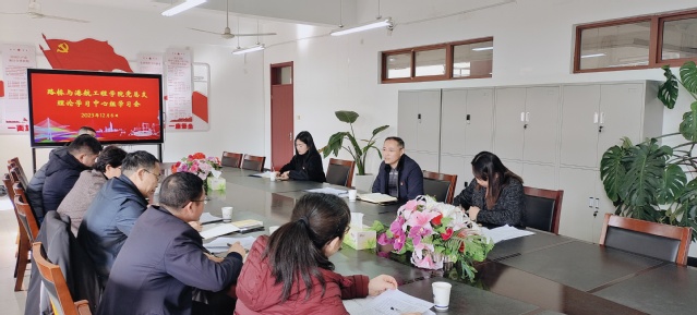 12月6日上午,路桥与港航工程学院党总支在修远楼305室召开党总支理论学习中心组学习会,深入学习贯彻习近平新时代中国特色社会主义思想和习近平总书记近期重要讲话精神,开展学习交流。校党委巡学旁听第一工作组副组长、校党委委员、党委组织部部长康建军,工作组成员袁焰老师、付璐老师一行莅会旁听指导。中心组全体成员及相关人员参会,会议由党总支书记李国之主持。