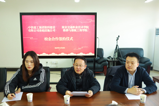会上,蒋玲院长介绍了路桥与港航工程学院的发展历程、办学优势、师资力量、专业设置情况,并表示基础设施公司作为中铁建工集团第四公司旗下的二级专业公司,施工项目涵盖市政道路、公路工程、铁路工程等领域,与学院专业建设发展和人才培养路径高度一致,希望不断深化校企合作,产教融合,推动校企共同发展。李振宇副总经理对基础设施公司的在建工程分布、企业文化、员工发展通道进行了介绍。