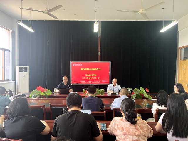 启航新学期,奋斗正当时。为贯彻落实二十届三中全会精神,推动新学期工作顺利开展,8月31日上午,马克思主义学院召开全体教师大会,组织集体理论学习,安排布置新学期工作。会议由马院院长兼党总支书记赵勇主持,全体教师参加。