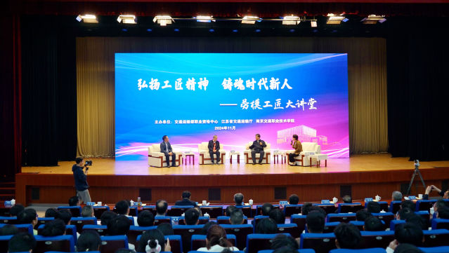 “干一行爱一行,爱一行精一行,以爱岗敬业之心展现交通行业新时代工人风采”“只要努力学习,一定有所收获;只要有问题,一定要创新;只要去追求,一定会卓越”“理论与实践相结合,做知识技能型人才”。11月16日,“人民工匠”国家荣誉称号获得者许振超、“蓝领专家”孔祥瑞、“全国技术能手”骆义伟等一行7人齐聚在南京交通职业技术学院为全校师生带来一场别开生面的思政课,他们以自己的亲身经历鼓励青年学生树立自信、坚持学习、传承匠心,敢为人先。500余人的报告厅座无虚席,现场气氛活跃、观众掌声络绎不绝。