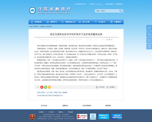 【江苏省教育厅官网】南京交通职业技术学院护航学子走好高质量就业路