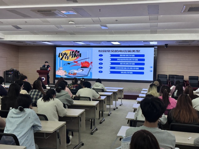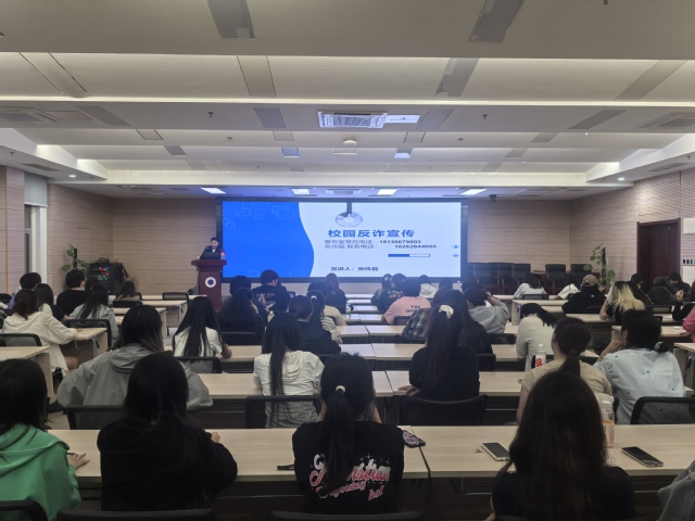 4月27日,人文艺术系在图书馆B203开展“警惕诈骗陷阱,护航青春成长”反诈宣传讲座。本次活动邀请科学园派出所驻校资深反诈民警张传磊警官主讲,120余名学生到场参与。