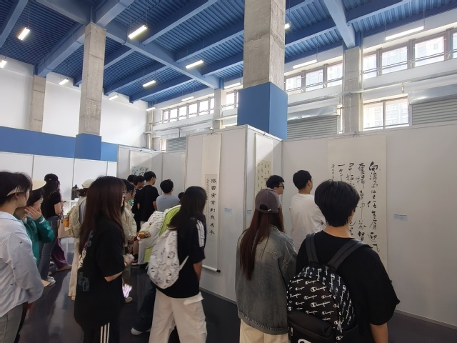 展览现场,学员们驻足欣赏了全省交通系统精选的120余幅作品及南京交院师生30余幅青春笔触。作品涵盖书法、国画、油画等多种形式,既有传统笔墨的深厚底蕴,又融入了时代特色,生动展现了交通人的人文情怀与艺术追求。