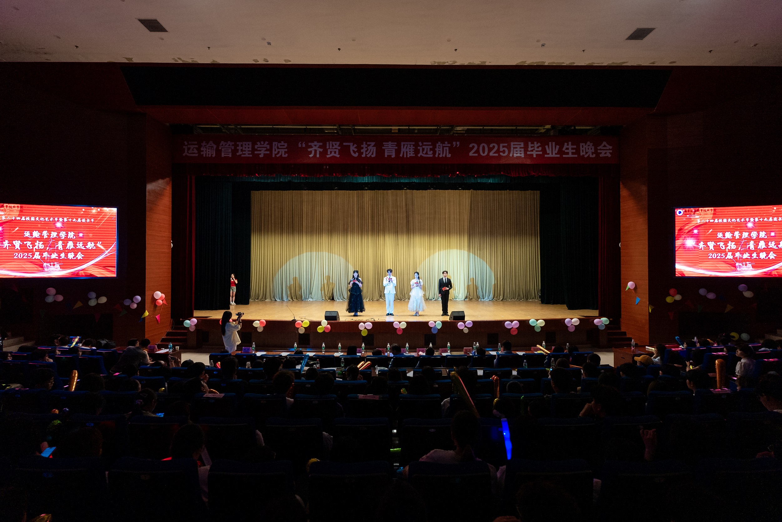 5月14日晚,运输管理学院在图书馆报告厅举办“齐贤飞扬 青雁远航”2025届毕业生晚会,学校副院长姜军、运输管理学院党政领导、毕业班班主任代表、全体辅导员、生活辅导员及全体2025届毕业生参加了此次毕业晚会。