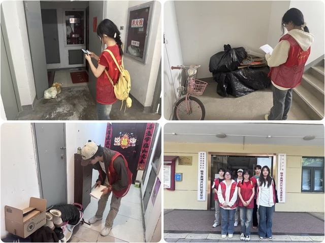 身穿红马甲的学生志愿者分成6个入户走访小组,深入社区开展服务。活动过程中,学生们协助社区工作人员检查消防设施、规范电动车停放;向居民讲解文明楼栋评选标准,号召大家共同维护公共环境;收集关于社区治理的意见建议。