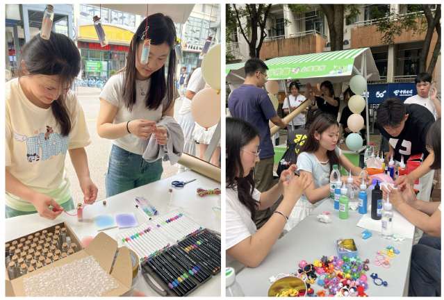 “扭扭棒手作”摊位热闹非凡,五彩缤纷的扭扭棒在同学们的巧手下,变身为爱心、向日葵、小动物等造型作品。通过造型设计与手工操作的结合,学生在创作中体验专注与宁静,在艺术中表达内心情感。