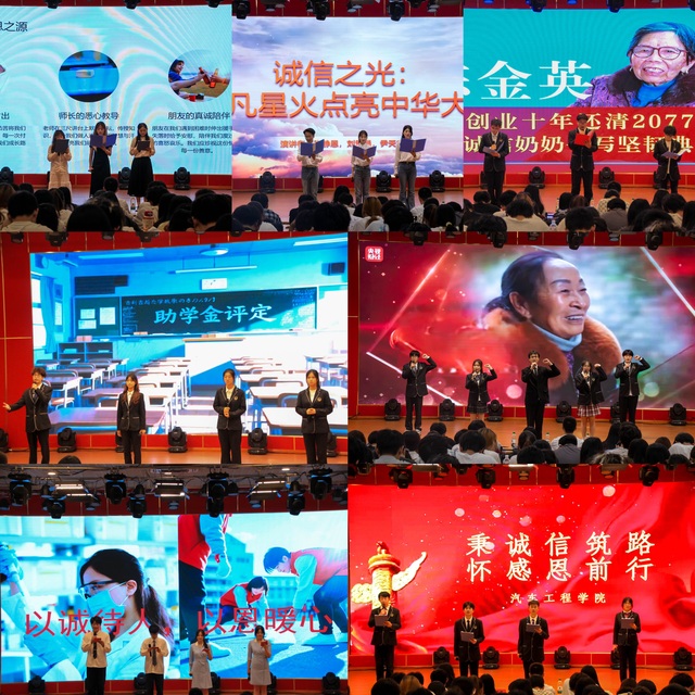 决赛现场,选手们结合自身成长经历与受助感悟,以真挚的情感和饱满的热情,讲述了诚信立身、知恩反哺的动人故事。选手们声情并茂的演绎,引发全场观众强烈共鸣。经过激烈角逐和评委严格评审,最终电子信息工程学院获一等奖;建筑工程学院、路桥与港航工程学院获二等奖;运输管理学院、汽车工程学院、人文艺术系和轨道交通学院获三等奖。