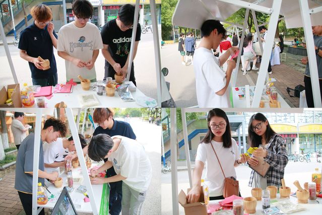 活动现场设置三大特色展位,一是“非遗减压·愤怒米锤”融合传统捣年糕技艺,参与者通过捶打糯米释放压力,兑换软糯糍粑;二是“节气养心茶”提供立夏安神配方茶包(含茉莉、陈皮等),配发节气情绪调节卡片讲解养生智慧;三是“千剪释压”提供纸张书写焦虑,学生书写压力词汇于纹样中,集体撕开象征束缚的纸艺。现场气氛热烈,智能工程机械专业江同学反馈:“捶打年糕时郁结情绪随汗水流走,竹笼碎裂的瞬间真切感受到压力释放。”