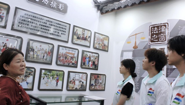 在水荆墅村“回家书房”,实践团与当地相关部门举行了共建仪式,正式挂牌成立“民族团结进步教育社会实践基地”。活动期间,江宁区作家协会主席李萍向实践团成员详细介绍了水荆墅村作为“中国少数民族特色村寨”独具特色的民族文化,在其带领下,实践团成员参观了村内的红石榴家园,深入了解了当地的民族风情、历史沿革以及当下的发展现状。