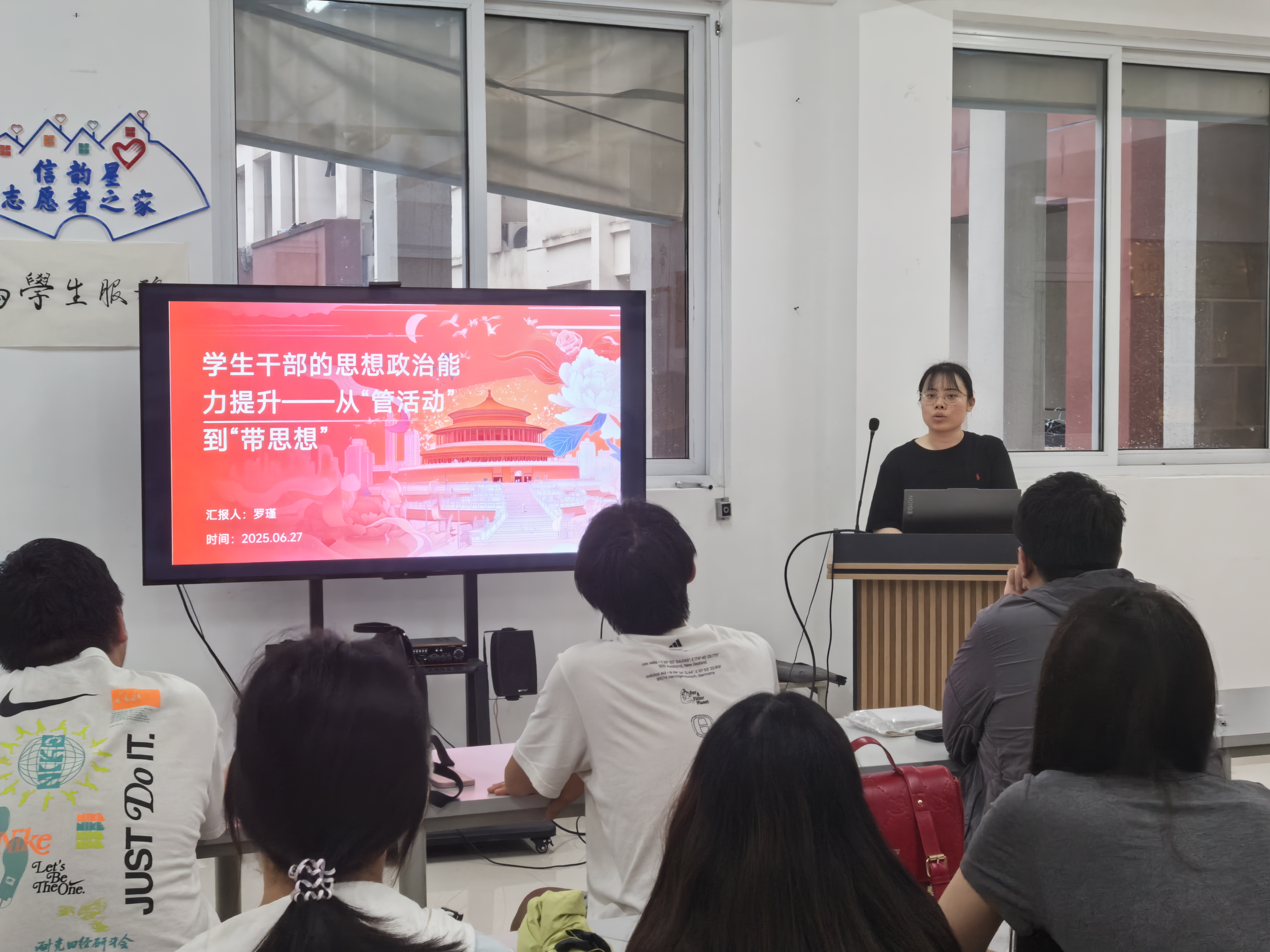 为进一步深化学生干部队伍建设,推动学生骨干角色从传统活动组织者向思想引领者转变,电子信息工程学院于6月27日在J栋一站式社区成功举办“学生干部思想政治能力提升”专题讲座。本次研讨会聚焦“从‘管活动’到‘带思想’”的核心议题,旨在探索新时代学生干部发挥思想引领作用的新路径、新方法。