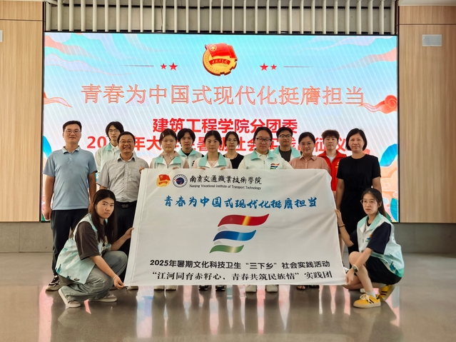 7月3日,建筑工程学院分团委在A栋一站式社区开展2025年大学生暑期社会实践出征仪式。学院党总支书记张丽君、副书记彭涌涛、学工办相关老师、2024年暑期社会实践优秀学生代表以及2025年暑期实践团队全体指导教师与队员齐聚一堂,共同吹响实践出征的号角。