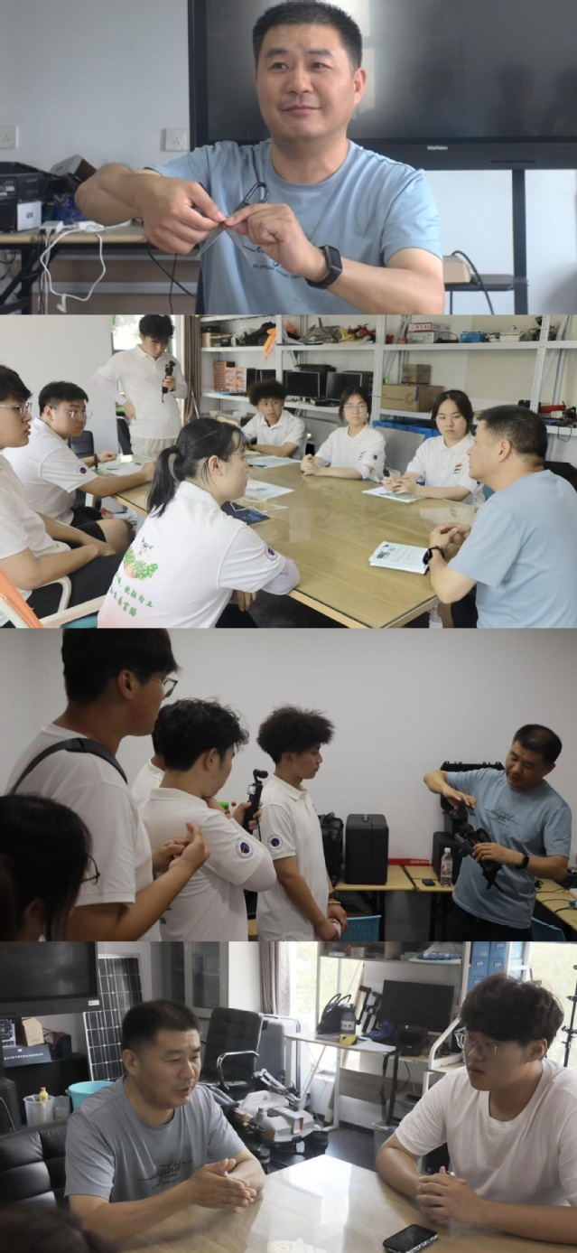 交流环节中,赵中营老师与实践团员展开热烈讨论。以苏南丘陵地区农业生产为样本,赵老师分享了植保无人机服务地方农业升级的实战经验:针对作物品种调整喷幅压力、破解续航短板等技术难题的鲜活案例,为队员们提供了可复制的实践范本。