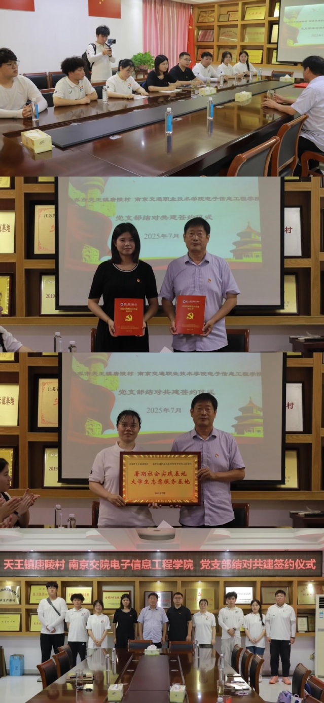 7月7日上午,电子信息工程学院与句容市天王镇唐陵村举行党建共建签约暨实践基地揭牌仪式。唐陵村党委书记刘树安、电子信息工程学院党总支第二党支部书记吴颖等出席活动,共同开启校村合作新篇章。