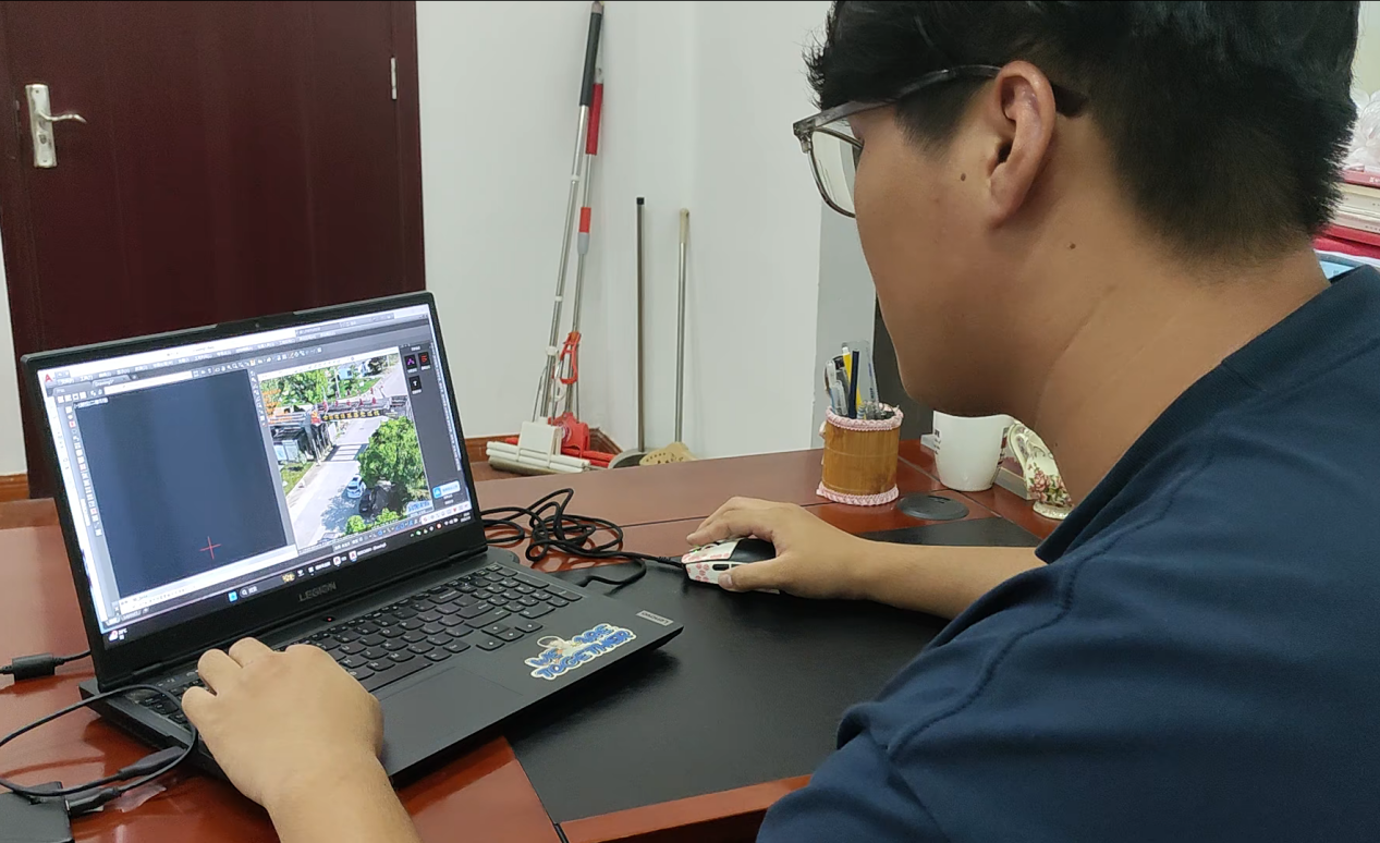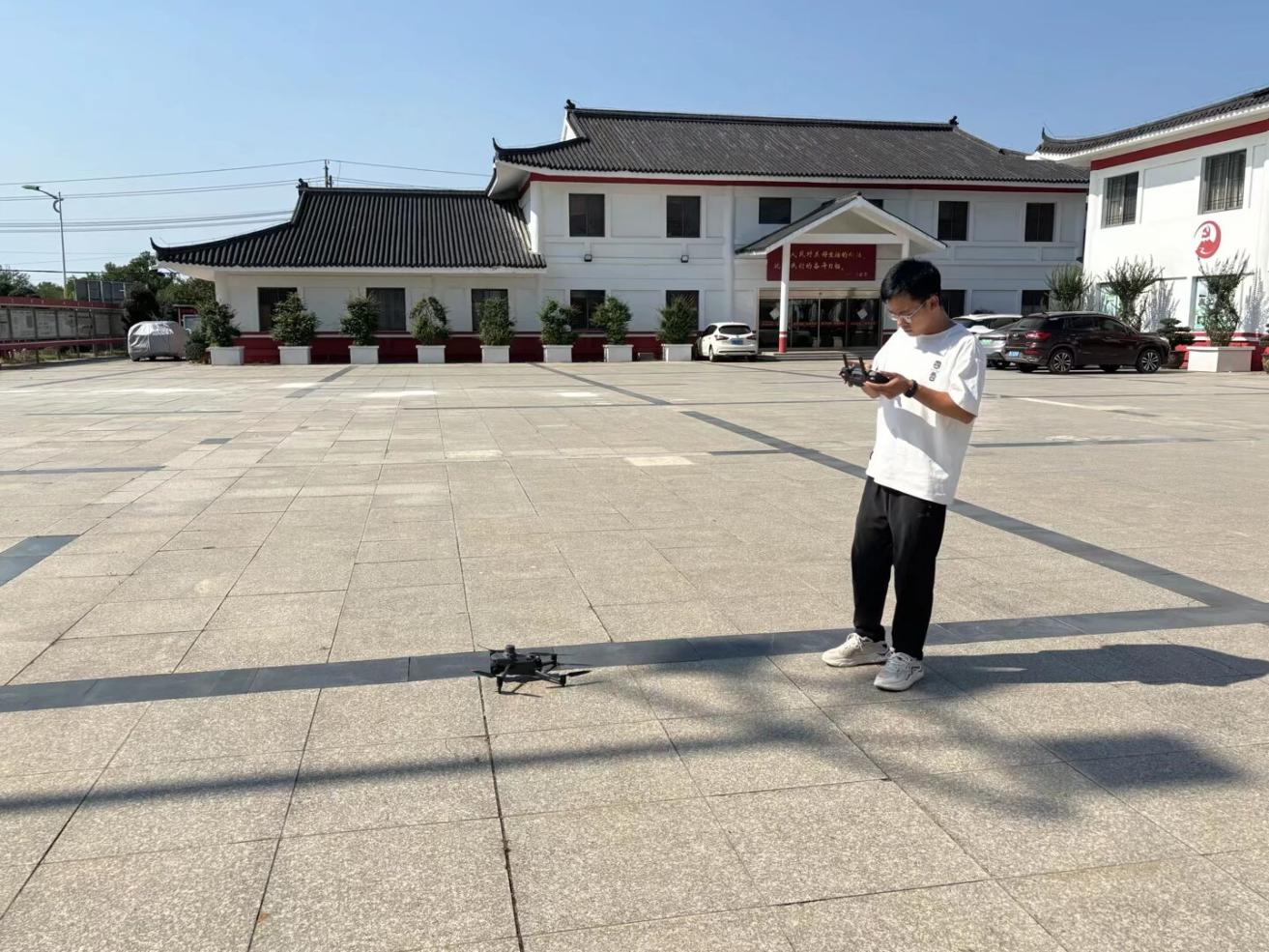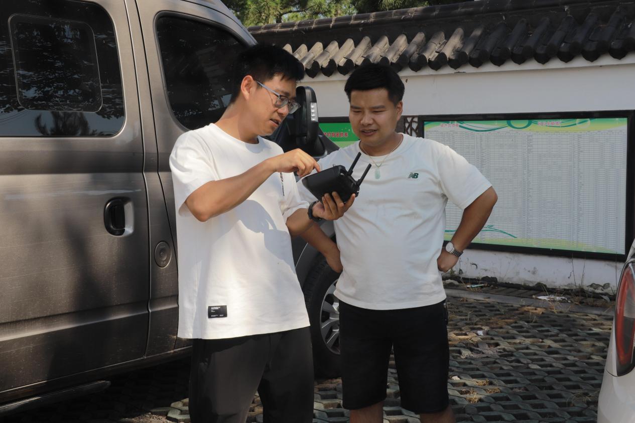 实践团结合前期调研掌握的村庄地形地貌与产业分布特点,制定了科学详尽的飞行方案。团队成员顶烈日、战高温,在测绘前辈的指导下操作大疆御3E无人机升空作业。高效采集覆盖村庄建成区、主要苗木种植区、道路水系及公共空间的高清正射影像与倾斜影像数据。通过严谨的航线规划与规范的飞行操作,所获影像资料的清晰度、完整性及高精度得到充分保障,为构建村庄数字底图奠定坚实基础。