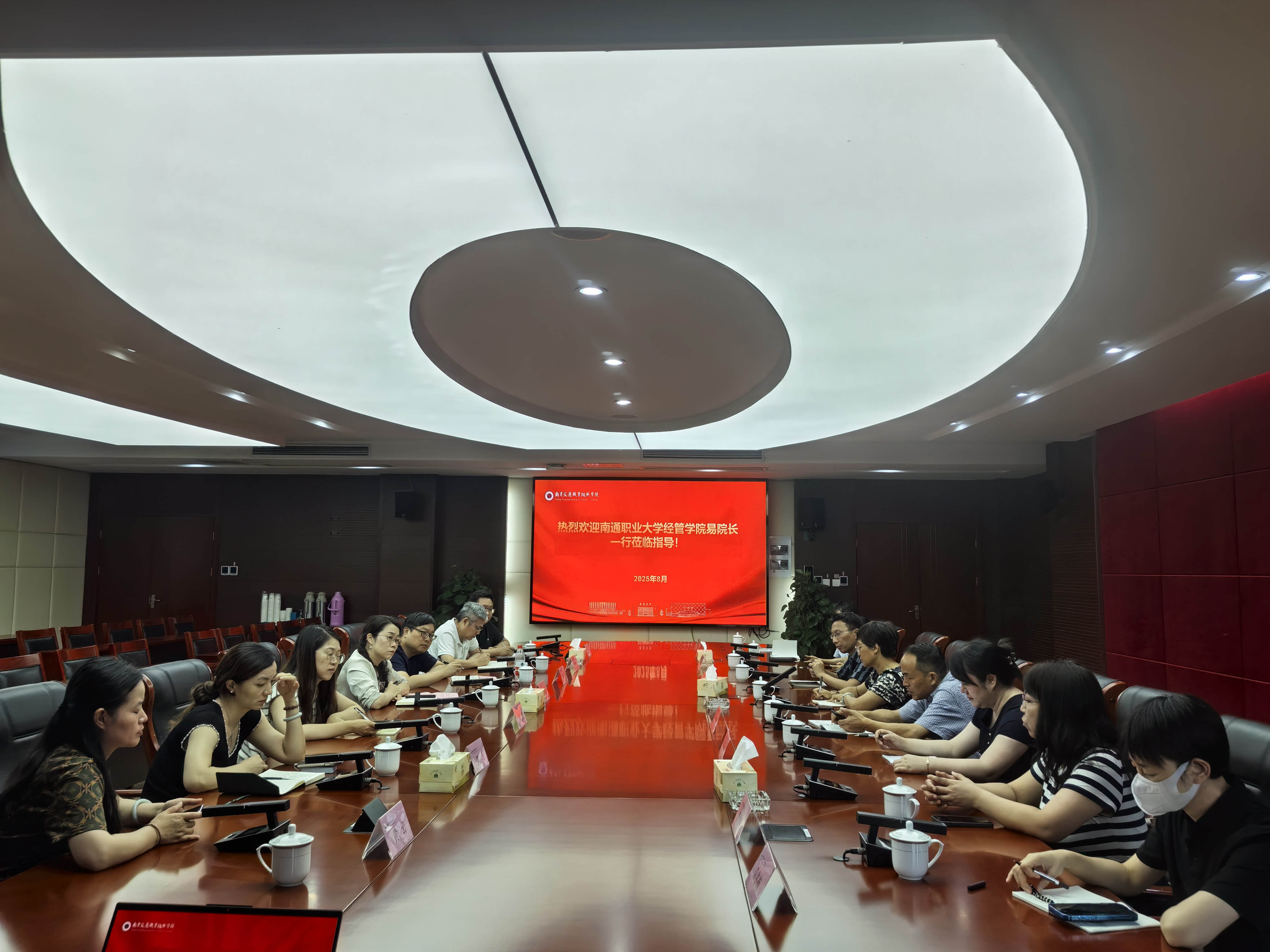 8月12日下午,运输管理学院与到访的南通职业大学经管学院院长易玉婷及各专业负责人一行7人开展了交流研讨活动。双方就高水平专业群建设、师资队伍建设、产教融合与校企合作、技术技能服务、国际化办学等方面进行了深入交流。