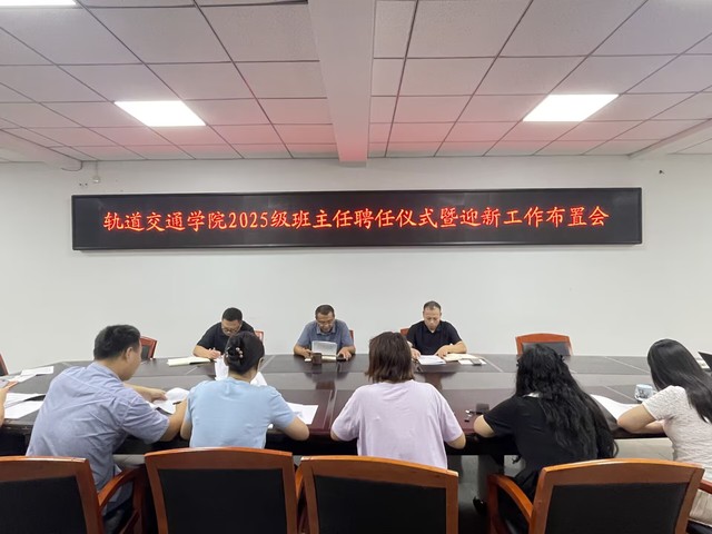 9月11日中午,轨道交通学院在明志楼308会议室召开2025级新生班主任聘任暨迎新工作布置会。学院党总支书记张晓焱、全体辅导员、2025级新生班主任参加会议,会议由党总支副书记韩京海主持。