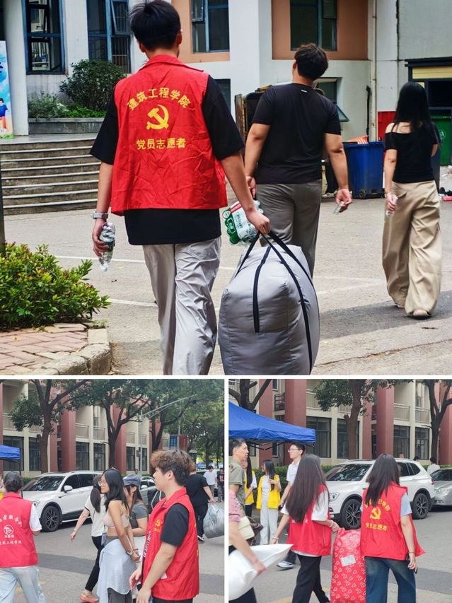 活动期间,志愿者团队科学分工、精准值守,在学校西门、东门、行健馆及新生宿舍楼等关键迎新点位开展服务。身着红马甲、臂戴红袖章的党员志愿者主动上前,协助新生搬运行李、规划校园路线,细致解答宿舍分配、报到流程等疑问,同时沿途介绍教学楼、食堂、图书馆等校园生活场所,用耐心服务化解新生初入校园的陌生感与焦虑感。