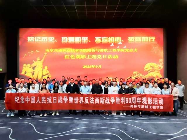 为铭记抗日战争历史,大力弘扬爱国主义精神,在纪念中国人民抗日战争暨世界反法西斯战争胜利80周年之际,9月24日,路桥与港航工程学院党总支精心组织全体党员及教职工开展“观历史影片 铭民族之耻”主题党日活动,本次主题党日活动以“铭记历史、珍爱和平、不忘初心、砥砺前行”为核心主旨,通过集体观看历史题材电影《731》,以影像为载体回溯苦难岁月,筑牢爱国初心,凝聚奋进力量。