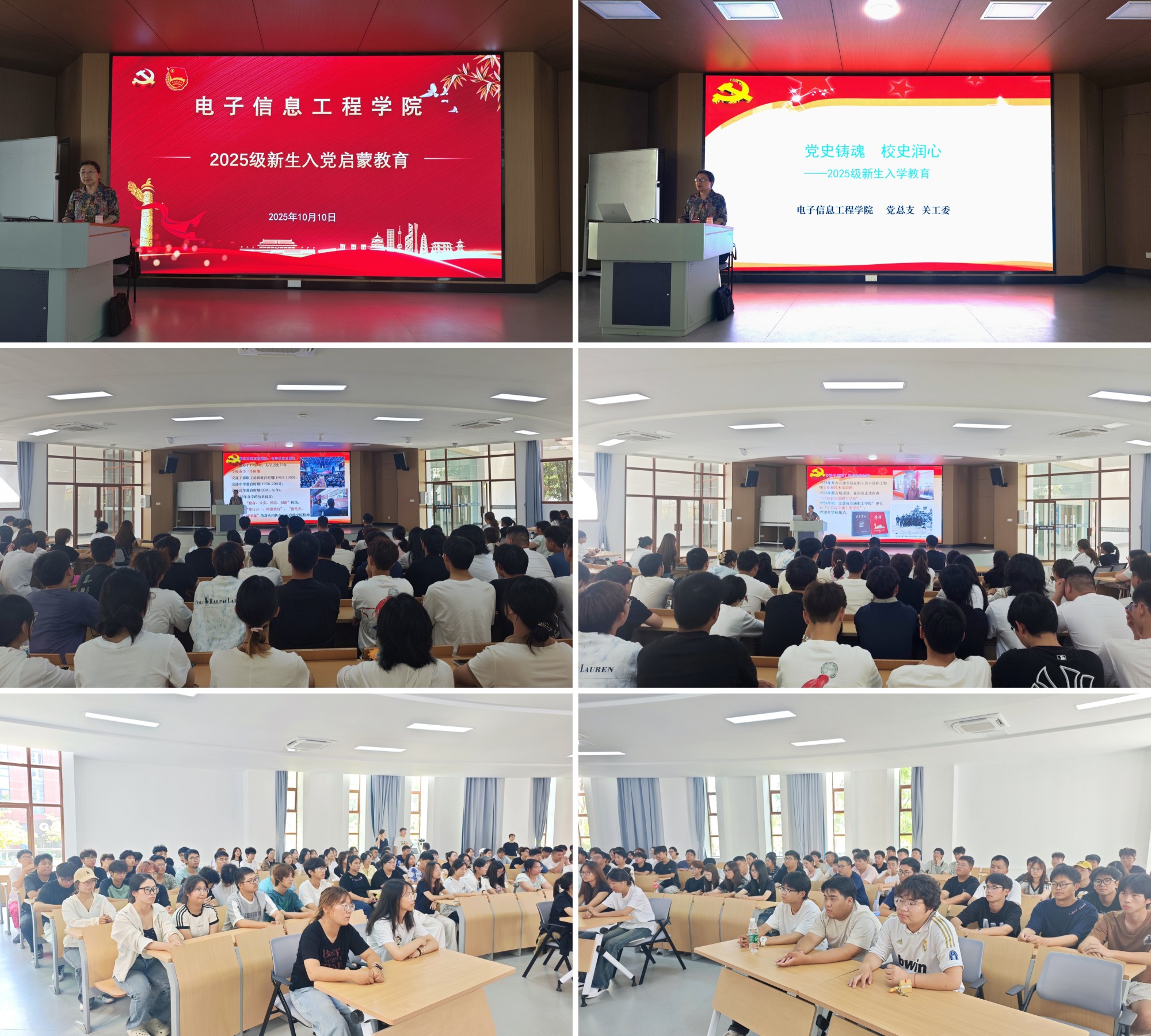 为加强我院2025级新生对中国共产党的认识,紧抓新生入学教育关键期,积极创新培养教育形式,引燃青年学子理想信念“火种”,深耕厚植爱党、爱国、爱社会主义情感,帮助青年学子知党、信党、入党,号召新生及时向党组织靠拢,进一步突出党建引领作用,近期,电子信息工程学院组织学生开展了2025级新生入党启蒙教育活动。