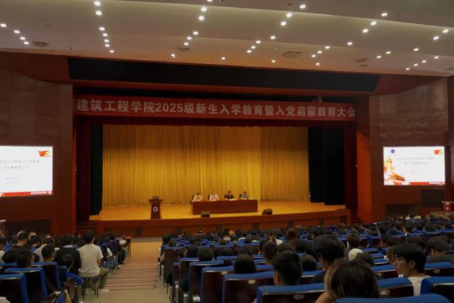 为帮助2025级新生更好地适应大学生活,明确发展方向,10月10日下午2点,建筑工程学院在图书馆报告厅召开2025级新生入学教育暨入党启蒙教育大会。学院党政领导、2025级辅导员以及全体大一新生出席大会,会议由学院党总支书记张丽君主持。