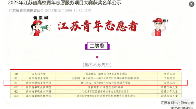 近日,2025年江苏省高校青年志愿服务项目大赛在南京审计大学举办。学院“建证初心:红色建筑保护与利用志愿服务项目”获二等奖。