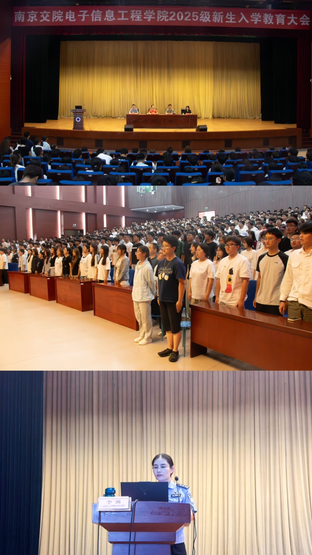 10月11日上午,电子信息工程学院2025级新生入学教育大会在图书馆一楼报告厅举行。电子信息工程学院党政领导、班主任、辅导员、全体2025级新生参加了会议。会议由党总支副书记吴蓉蓉主持。