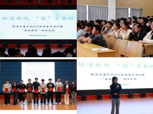 为加强新生宿舍管理,营造安全、整洁、文明的住宿环境,2025年10月15日下午,轨道交通学院在大学生活动中心226教室举办了2025级宿舍长会议暨“五好宿舍”颁奖大会。学院2025级全体班长及宿舍长参加。