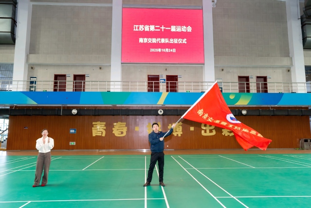 大会最后,举行了庄严的授旗仪式。袁茜部长将象征着责任与荣誉的校旗授予体育部张旭主任。旗帜的传递,是使命与信任的交接。全场掌声雷动,这激昂的氛围凝聚成共同的信念与期盼——祝愿南京交通职业技术学院的运动健儿们在本届省运会上奋勇拼搏,载誉而归!