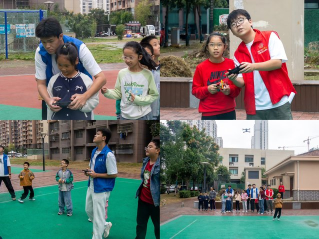 活动伊始,志愿者通过生动有趣地讲解,为孩子们揭开了无人机的神秘面纱。从飞行原理到实际应用,从结构组成到操控技巧,志愿者用浅显易懂的语言将复杂的科技知识娓娓道来,引发了孩子们的浓厚兴趣和阵阵惊叹;在手工制作环节,孩子们在志愿者“一对一”的指导下,亲手组装简易飞机模型,从零件组装到成品诞生,增加了学生的成就感;随后大家来到社区活动场地,孩子们在志愿者的保护下进行了真机试飞体验,现场气氛活跃,孩子们专注投入,展现出浓厚的科学探索热情。