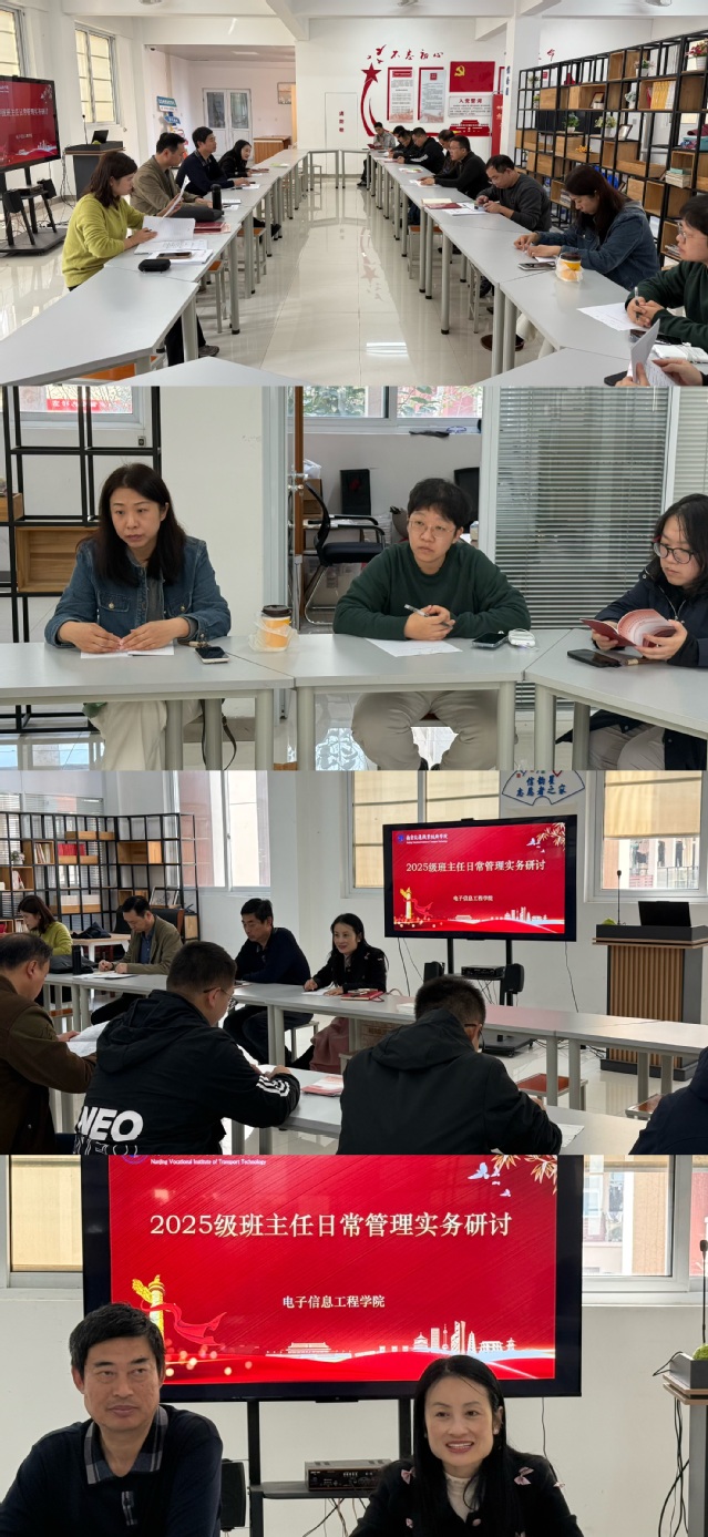 为进一步加强学院班主任队伍建设,充分发挥班主任的重要作用,10月31日下午,电子信息工程学院功能型党支部在一站式学生社区“薪火驿站”工作站召开25级班主任日常管理工作交流会。学院相关负责人、25级全体班主任和辅导员参加了会议。