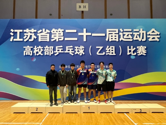 江苏省第二十一届运动会高校部(乙组)乒乓球比赛于11月1日至5日在南京信息工程大学举行,我院乒乓球队凭借出色的发挥与坚韧的意志,在全省41支劲旅中奋勇争先,最终斩获男子双打亚军与男子单打第四名的优异成绩,为学院赢得了荣誉。