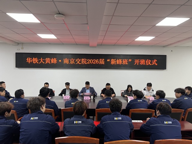 2025年11月5日下午,学院举办了2026届“新蜂班”订单班开班仪式。华铁大黄蜂作为全国智能交通装备行业产教融合共同体成员单位,已与学校开展了多届订单班合作。华铁大黄蜂人力资源部相关负责人、轨道交通学院副院长廉政和相关教师及全体26届华铁“新蜂班”学员出席了仪式。