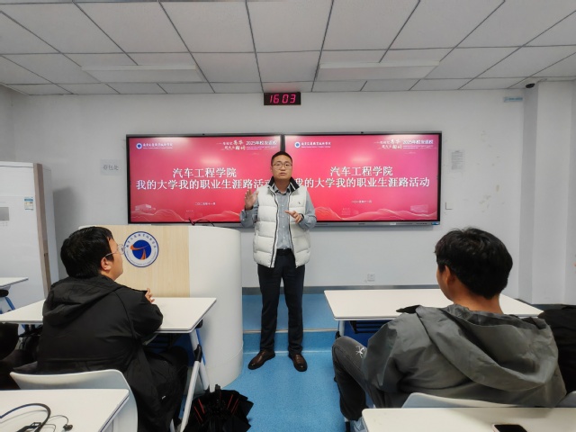 2025年11月10日下午,汽车工程学院“启航车苑”生涯规划工作室在致远楼425成功举办“我的大学我的职业生涯路”主题分享会。本次会议特邀优秀校友罗金星担任主讲人,共有50余名学生参与交流。