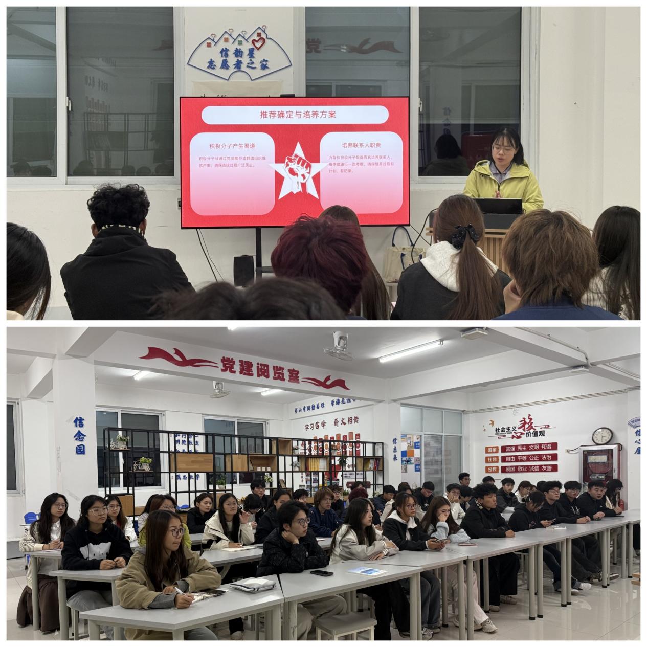 辅导员罗瑾老师结合《中国共产党发展党员工作细则》,紧扣“递交入党申请书—入党积极分子—发展对象—预备党员—正式党员”的核心脉络,用“路线图”式的清晰讲解,拆解五大关键阶段的具体要求。