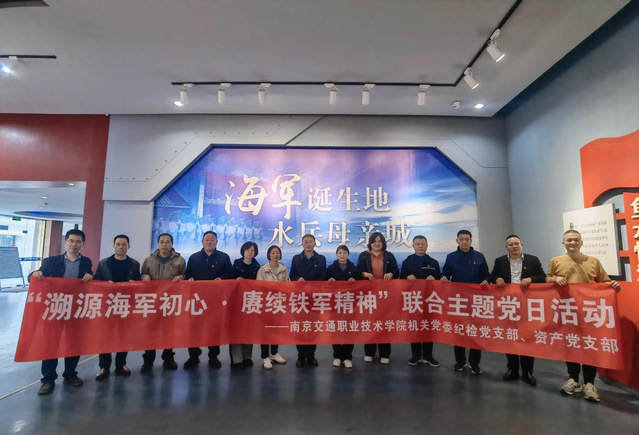 近日,学院机关党委纪检党支部与资产党支部以“溯源海军初心 赓续铁军精神”为主题,联合组织党员赴泰州开展沉浸式主题党日活动。党员们先后走进泰州海军诞生地纪念馆、苏北党校旧址及泰兴新四军黄桥战役纪念馆,在实地研学中回望革命历程、淬炼坚强党性、凝聚奋进力量。