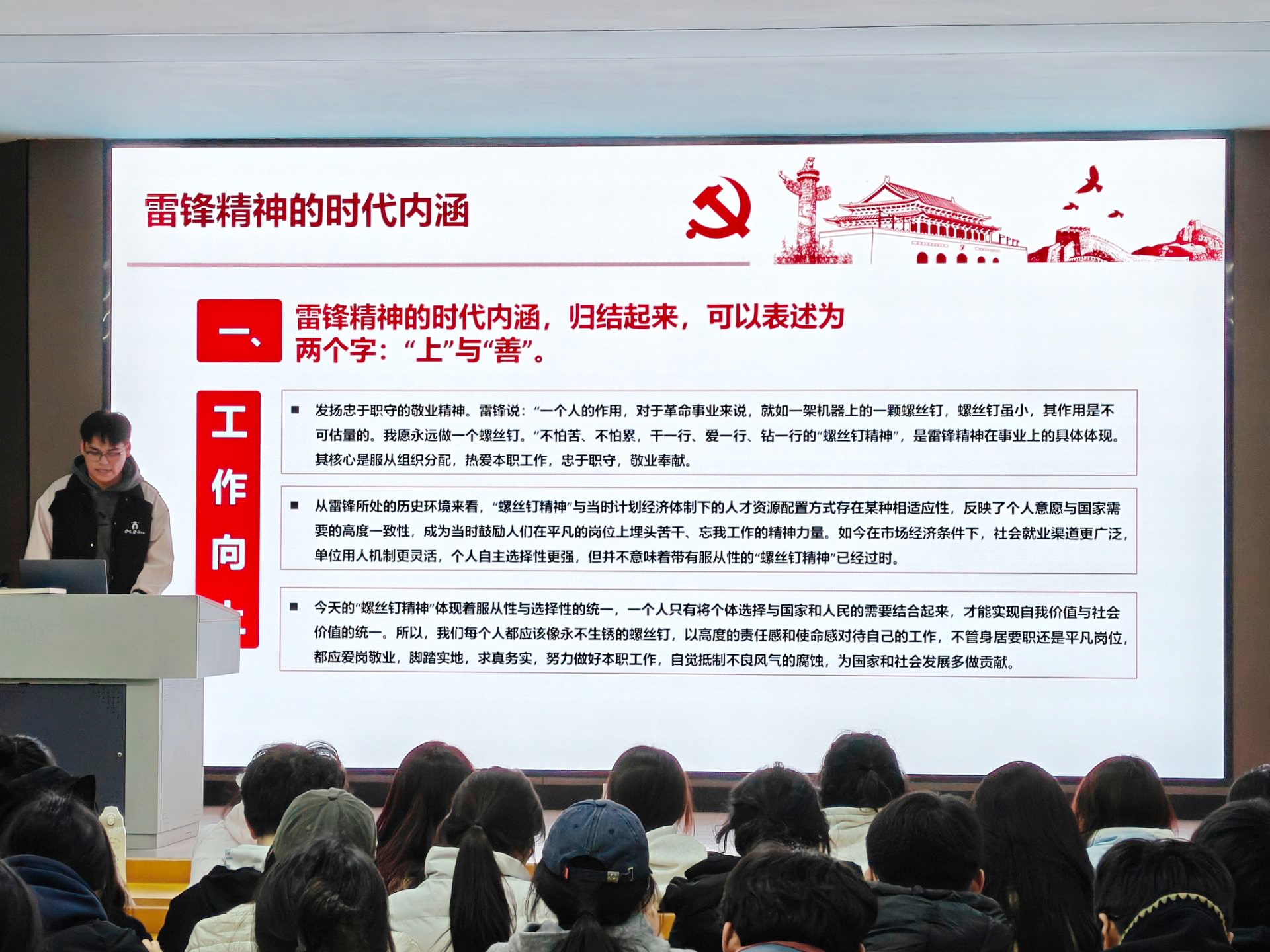 王梓同学真挚的话语如同一束光,照亮了同学们前行的道路。这场主旨报告,让雷锋精神在每一位同学心中扎根生长。相信在未来的日子里,运输管理学院的学子们定会以实际行动响应号召,将雷锋精神化作日常的点滴善举,在个人成长的道路上与国家发展同频共振,让雷锋精神在新时代绽放出更加温暖而耀眼的光芒。